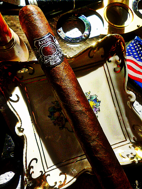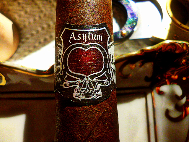 The wrapper of the Asylum is a very dark brown with small veins and a nice oily sheen to it. There is a little toothiness. The stick is finished off with a well done tight triple cap. The stick is very firm.