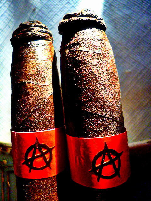 Ok..Ok…The construction is rustic. The cigars vary from stick to stick. One stick has rock solid seams and the other does not. Some are quite vein less and others look like they have tree trunks running through them. That aside, I should add that all of the cigars have a gorgeous shiny, oily sheen to them. And most have a very toothy appearance. The pigtail is consistently placed such that a mechanical tool is required to remove it, like an electric turkey cutter or a dildo with a blade.