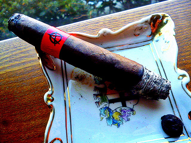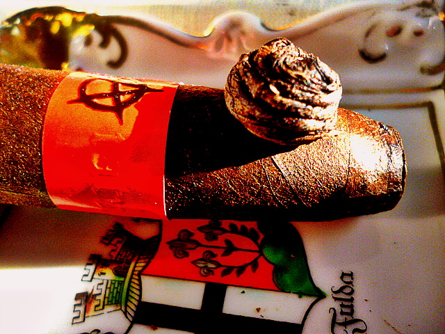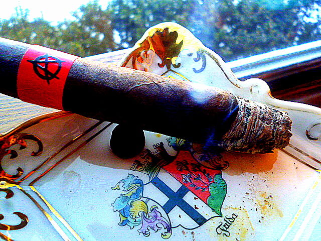The second third is all about consistency. And complexity. The cigar is beginning to really show off now. All of the aforementioned flavors and aromas are melding together to provide me an experience of a smoke. Experience. The only part of the experience I miss is the luscious amounts of smoke I experienced in the beginning. Clearly, this cigar is wrapped a bit too tight. Which also explains the ash holding on so long….Because it’s making me a crazy man trying to get my spooge shot of wonderfully colored blue smoke wafting gently above the stick. Damn it to hell.