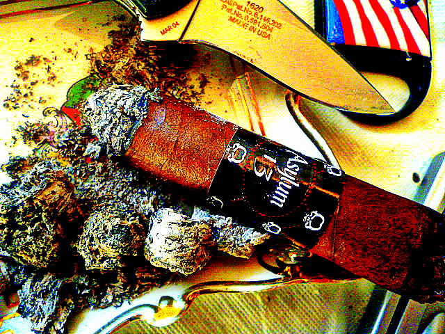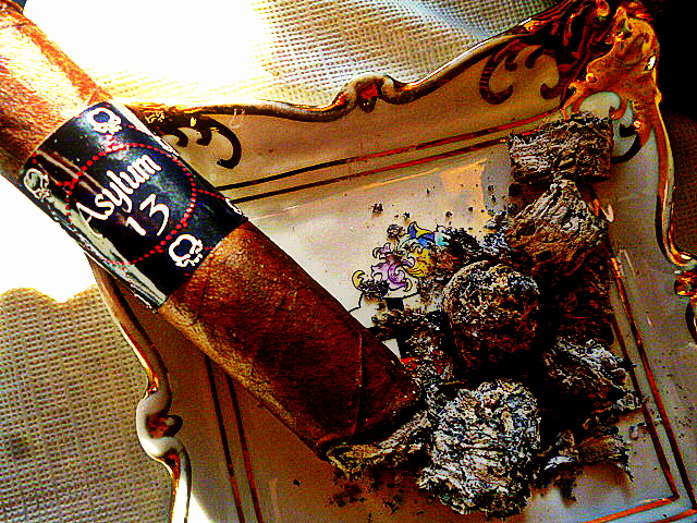 I also bought some behemoth sized Asylum 13’s. Maybe 6 x 60. I don’t know what I was thinking. Those large sticks take so long to get to the G Spot. They are still marinating in my humidor and I got them 2 months before I got what I’m smoking for the review.