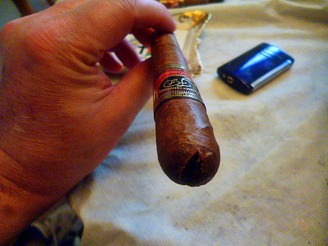 I do a “V” cut and light up. I might add that I purposely bought a Corona with the knowledge that this small of a cigar should pack a real wallop. So I put my seat belt on and here we go.