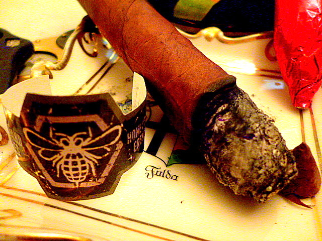 At this point, I would say that this is the Viaje blend that a newbie could be introduced to as his/her first of the line. The pepper is mild. The sweet tobacco is lovely. I still taste pie crust. And now I’m beginning to smack my lips. This cigar begins to have a long finish.