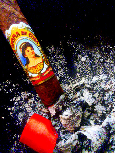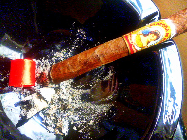 The espresso shows up but no real creaminess yet. Just a dang big wheel barrow full of red hot peppers. The ash seems to hang tough as I let it rest at the bottom of the ashtray.