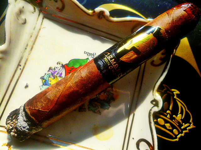 Of course, the band on the Armada is very pretty. Even my wife went, “Oooh,” and then she smelled it and said it smelled like piss. She says that about all my cigars.