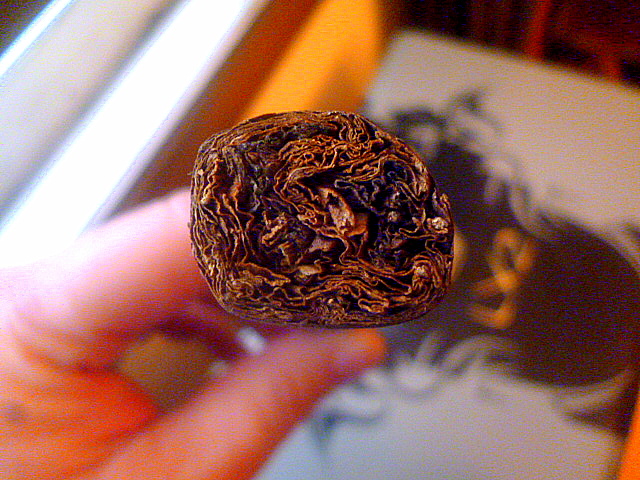 I loved the look of this cigar the moment my eyes lay upon it. That dark maduro wrapper is beautiful. The box press is a bit goofy as it must have gotten squished in the box and now resembles a rhomboid instead of a rectangle. But seams are tight. Very few veins. The dark brown wrapper is inviting. It looks like a double or triple cap but is so perfectly integrated that being sure is impossible. There are oils glistening from the wrapper. It feels smooth in some places and toothy, in others.