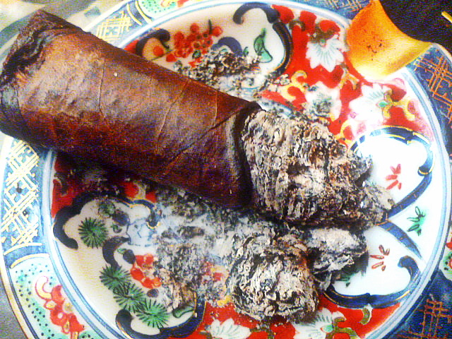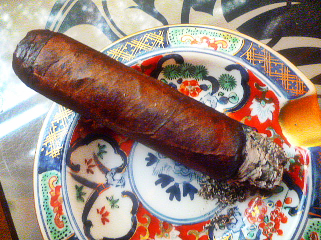 At the halfway point, the cigar becomes very complex. The whole array of flavors is married together. Everything I described earlier is in force and all on an even keel.
