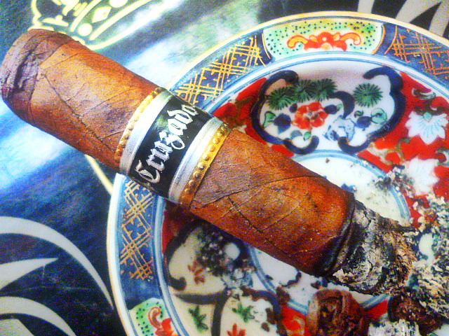 Time to remove the medieval design band. It comes off easily. With an extensively aged cigar, that band can be real trouble getting off in one piece.