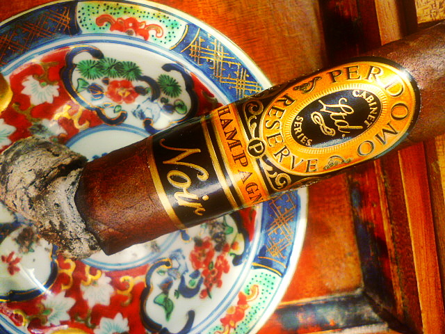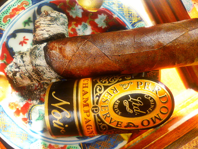 The Noir is one of my favorites and when it shows up on sale, I grab it. The press release, in 2011, stated this: “The Perdomo Reserve Champagne Noir is blended with dark, oily triple-fermented Cuban-seed Maduro wrappers meticulously aged in bourbon barrels. Filled with hints of chocolate and dark roasted coffee, this medium to full-bodied blend offers a sweet aroma with a smooth satisfying finish.