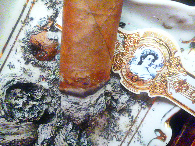 I’ve reached the first inch and the cigar is very pleasant. The ash falls off into the ashtray. And not my lap.
