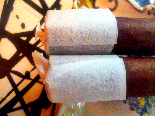 The cigar band comes off like a dream leaving no glue residue. I should add that the band is spotted with what looks like little squashed skulls. They could also be some sort of flower. Actually, the look like poppies.