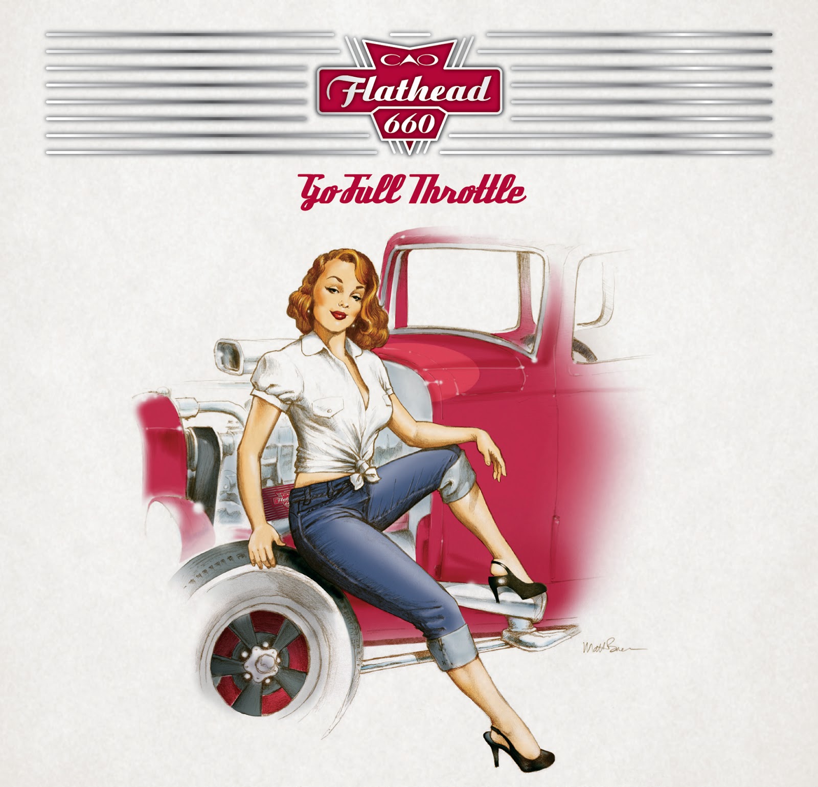 The box has a muscle car/hot rod look to it and inside, they placed a 1940’s-1950’s poster of a pin up girl. Very retro.
