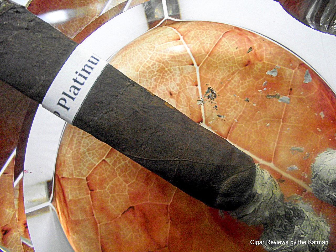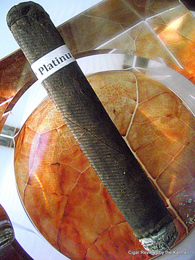 The stick is almost identical to the Royale in shape and construction. Only the Platinum has much sharper corners. It has a triple cap nicely done. Seams are totally invisible and there are lots of minute veins. There is a slight oiliness to the wrapper; which on this cold dreary day in Wisconsin will inhibit me from really picking up that feature, and it feels very smooth to the touch. Like me.