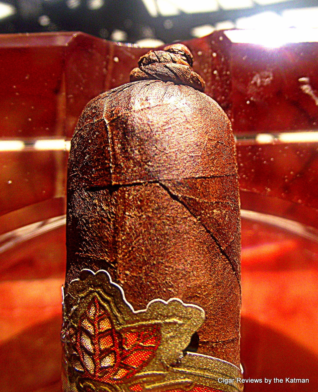 The cigar is a bit mis-shapened because I cannot rotate the double cigar bands so they align for the photos. It is like the cigar is a little squished.