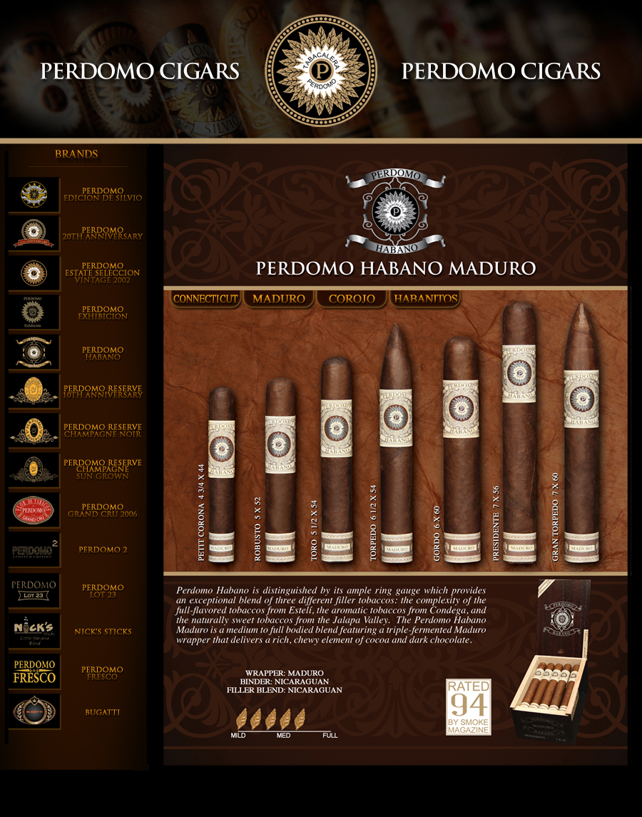 The Perdomo Habano cigars can be had in 3 wrapper styles: Connecticut, Corojo, and Maduro. CA rated the Corojo blend 90.