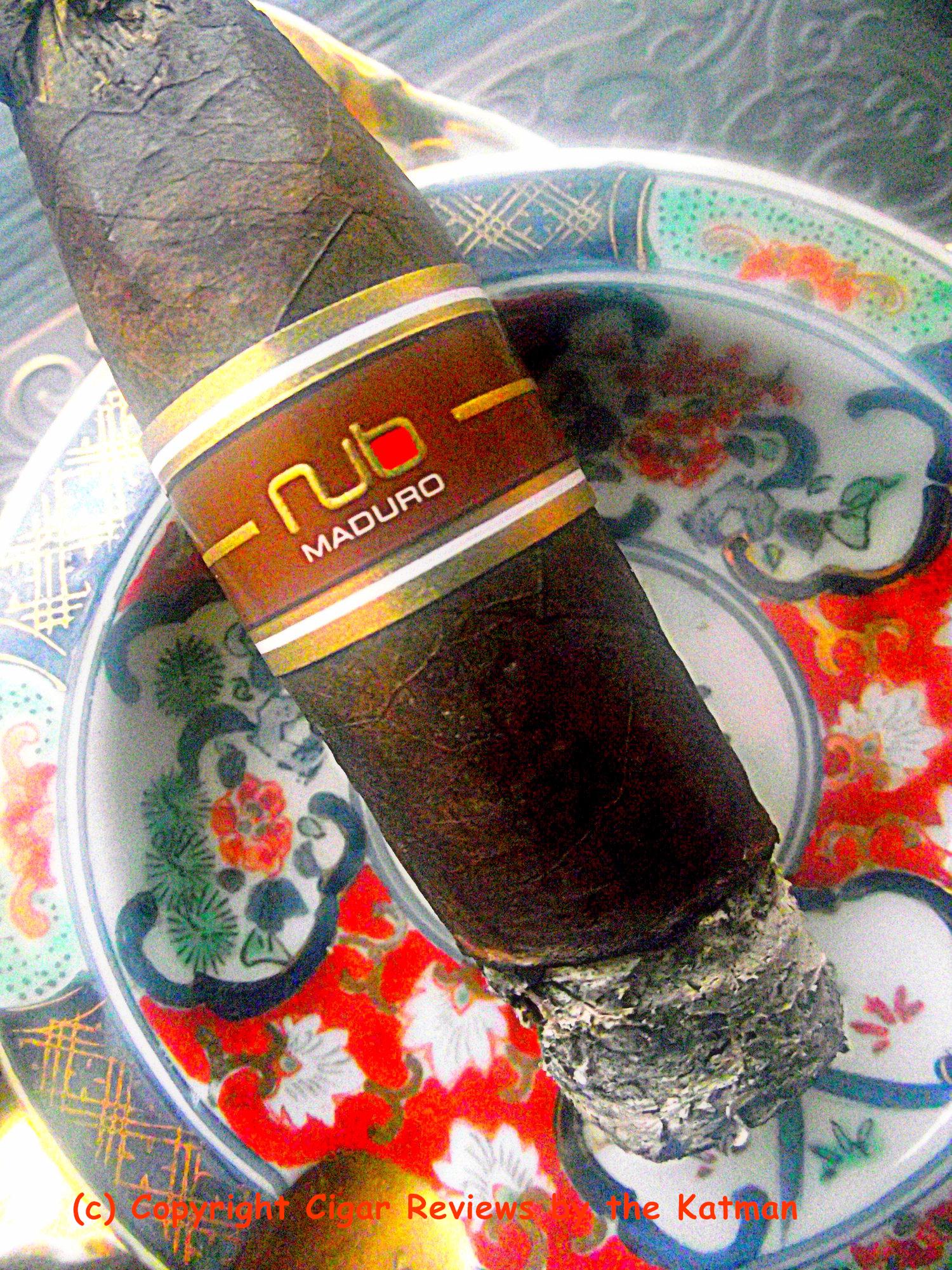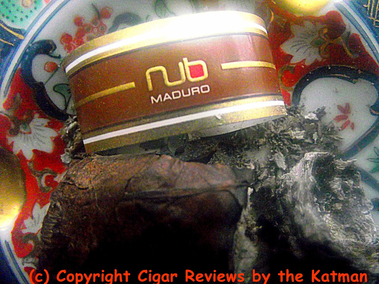 The 464T is a masterpiece of construction. Solid as a rock. Invisible seams. Very few veins. And an impeccable cap. The cigar band is a simple brown and gold with “Nub” and “Maduro” written on it.