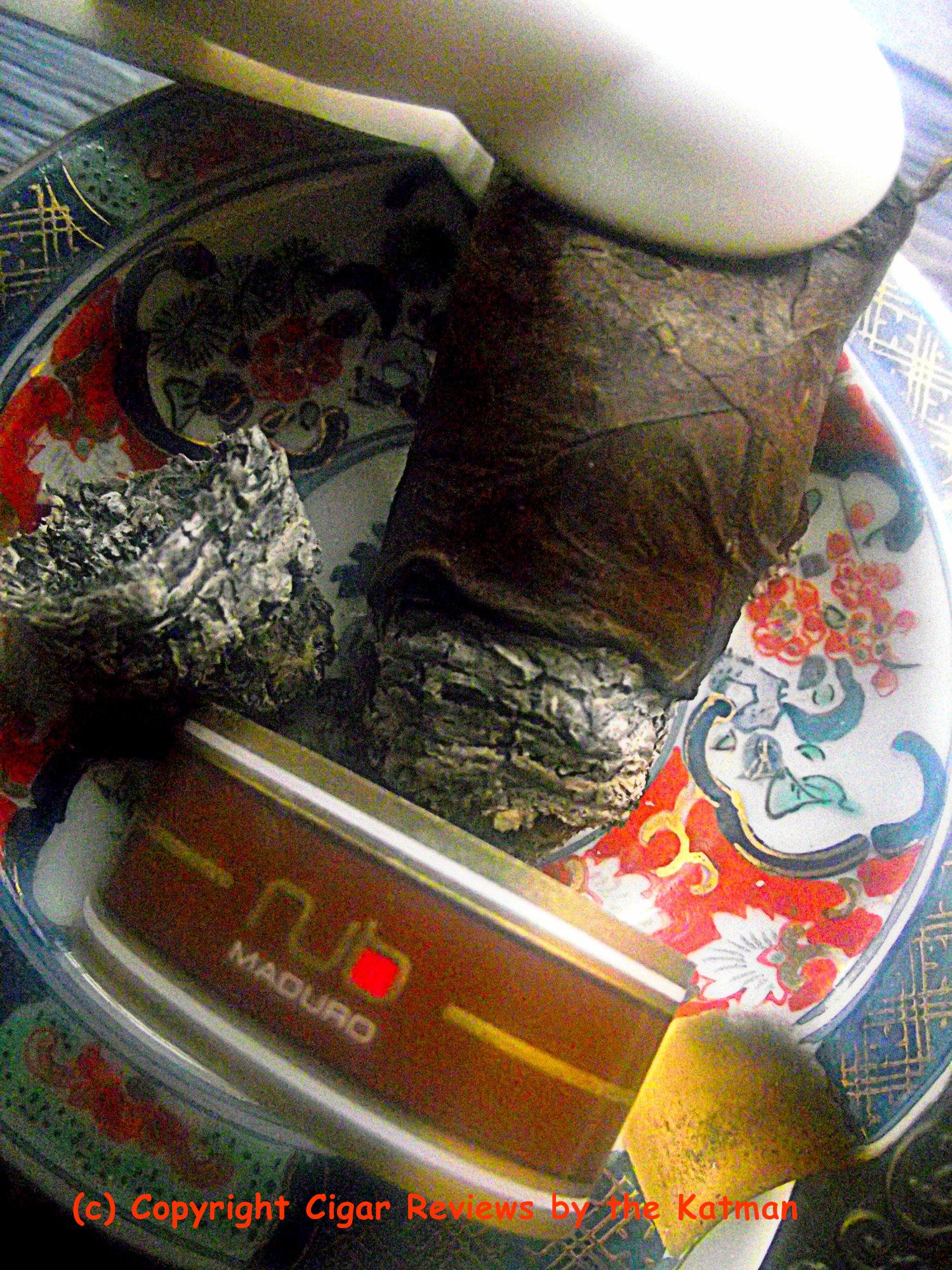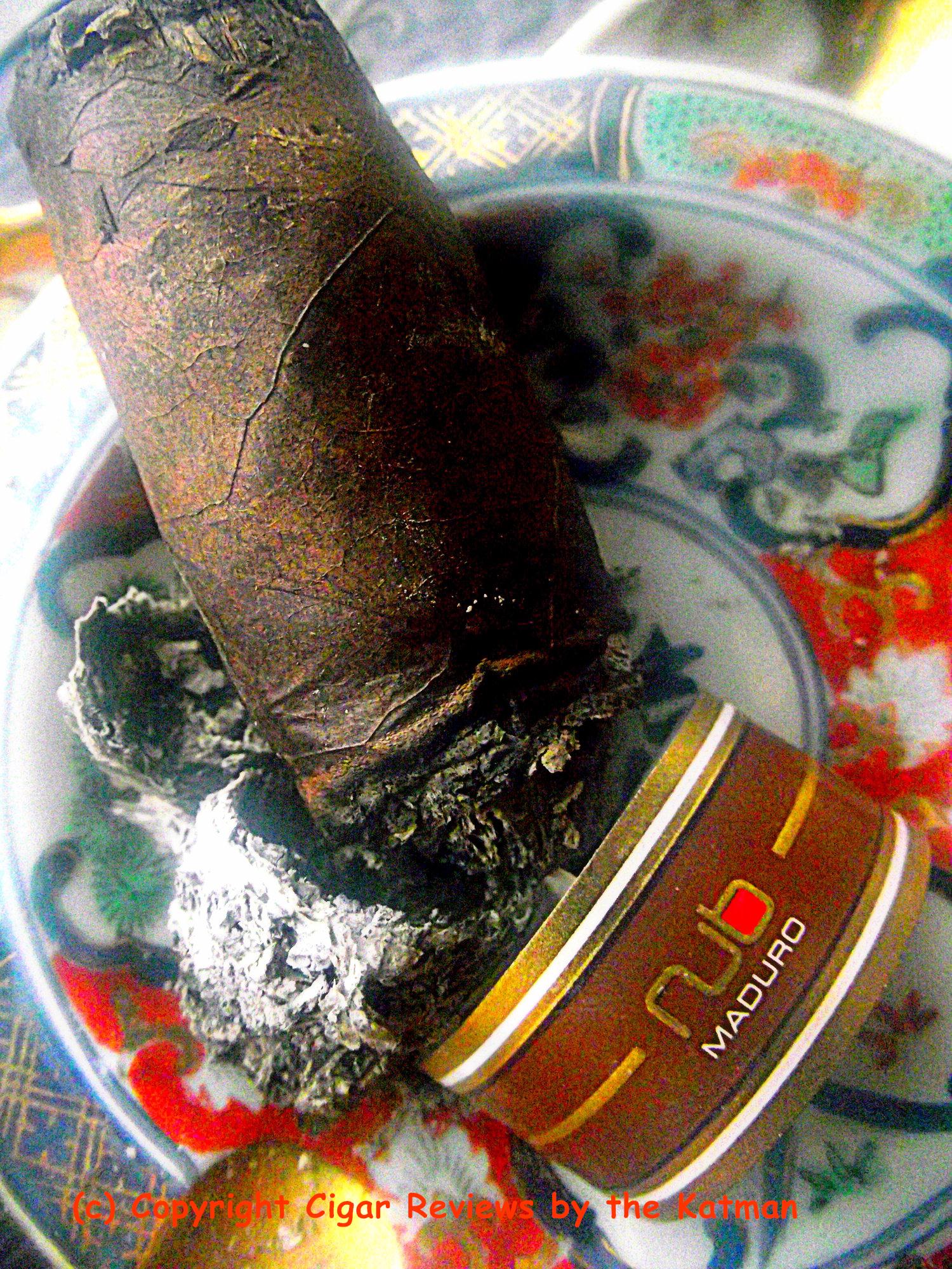 The cigar finishes up very full bodied. Nicotine galore. (Pussy’s uncle) But, again, I find it very difficult to finish it without an implement to hold the nub; pardon the pun. I have three of them and I can’t find a single one so I use a refrigerator clip magnet. Sort of a roach clip.