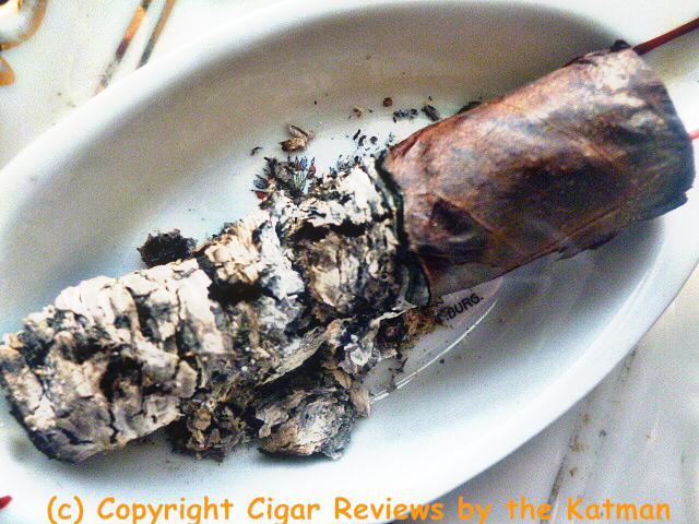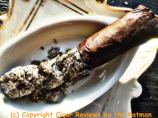 The nub is cool and without a bit of harshness. The cigar is blazing away at full bodied. And once more, no nicotine kick. Brava.