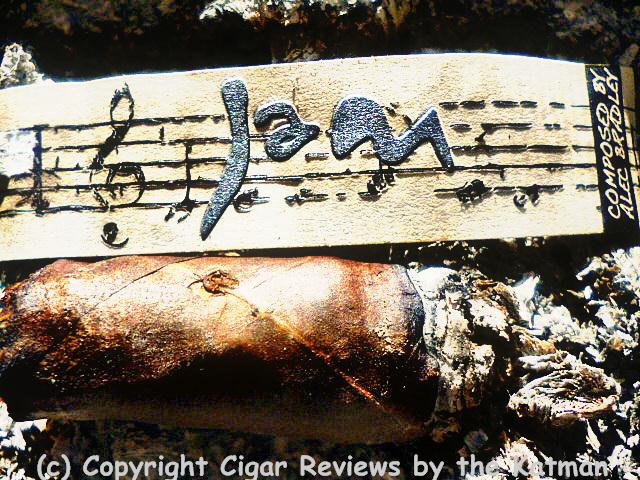 The cigar band is simple. It has a music motif whereas the background is music staffs with barely visible notes on the staff. Plus the word, “Jam.” The connotation of improvising, wood shedding, laying down some riffs, etc.