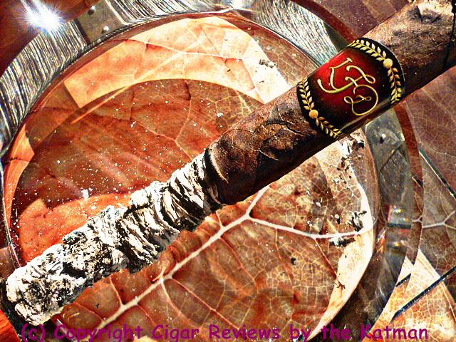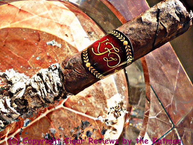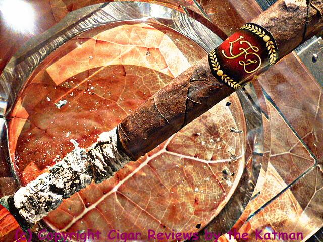 A small wrapper seam comes loose just below the cigar band so I use my Kingpin glue and fix it. But beside this slight transgression, the cigar’s structural being is behaving admirably. No loose tobacco at the cap. Char line doesn’t need touch ups. And the burn is great.
