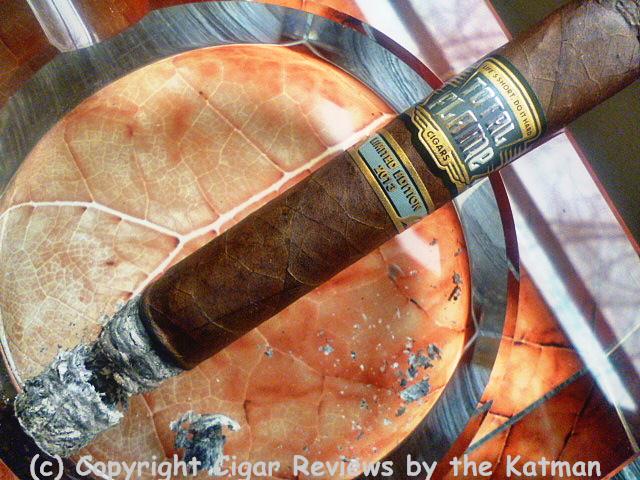 This is a real pretty cigar. A gorgeous chocolate brown with lots of veins. A nice oiliness and smooth to the touch. They went all out on the presentation. Three cigar bands. The main one is silver and gold and a little similar to the CAO Flathead. Although, I like the Total Flame better. A secondary band is also gold and silver with the black letters declaring: “Limited Edition 2013.”