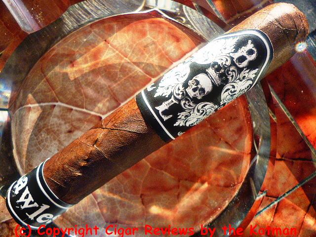 The main cigar band is another in a long line with a skull as its main theme. Only this time, the skull has a crown above it. The secondary band at the foot merely tells us the blend’s name. What the marijuana leaf logo was to the 1960’s, the Skull is to the 21st Century.