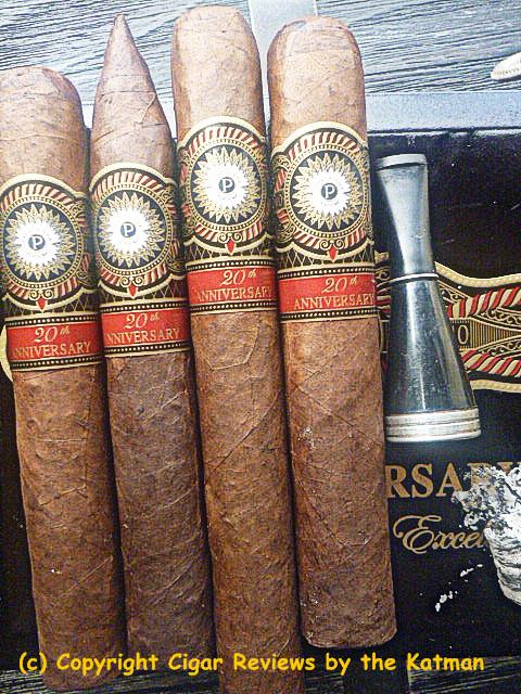 The basis for the cigar is to celebrate the 20th year that Perdomo had been in business. The stick is a semi box pressed cigar. The cigars are aged for 6 years and then are barrel aged in bourbon barrels for an additional 14 months.