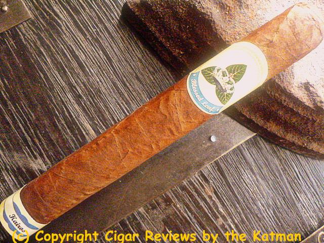 The wrapper is a nicely mottled brown that comes close to being the color of butterscotch. In the right light, there is a bit of oiliness. The wrapper feels very sandy to the touch. The cigar is a sloppy box press. More misshaped than box press. Seams are tight. A shit load of veins. A nicely done triple cap. Between the mottling and the vein count, it has a rustic look. The stick is very hard.