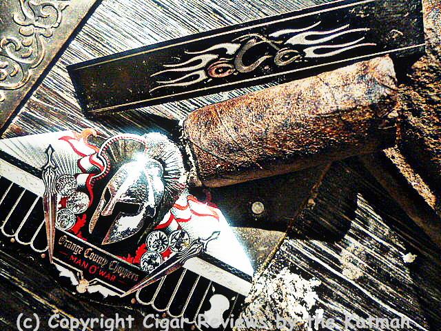 Construction, like in all the MOW blends, is immaculate. Virtually seamless. An attractive marbling of colors that range from dark coffee bean to charcoal. Very toothy. Lots of small veins. The cap is perfectly executed. The stick is hard but has that perfect push. No soft spots. And the gorgeous MOW cigar band with the words: “Orange County Choppers” in chrome lettering. The foot band has that cool silhouette of a hipster, hardworking Harley.
