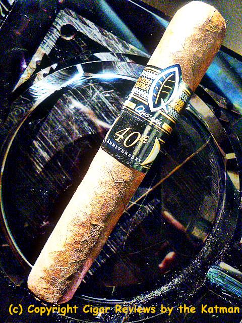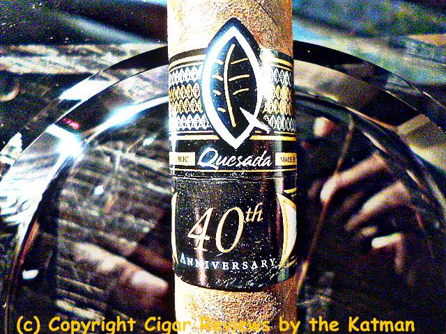 The double cigar band is not flashy and could fit right in with other Quesada blends. The upper band has the standard Quesada logo and the lower band says, “40th Anniversary.”