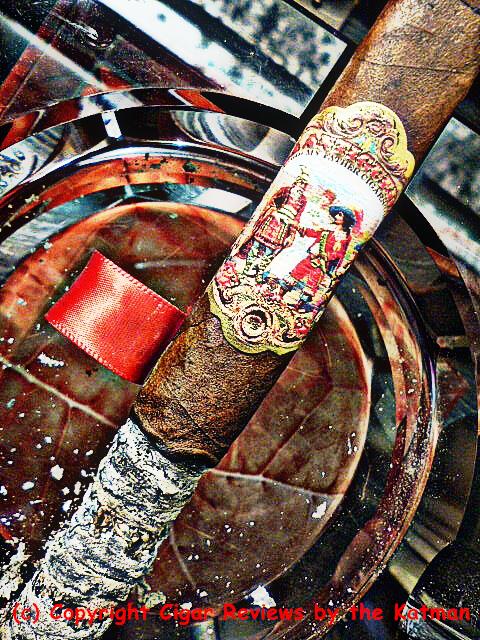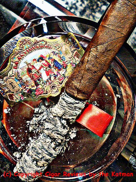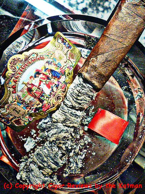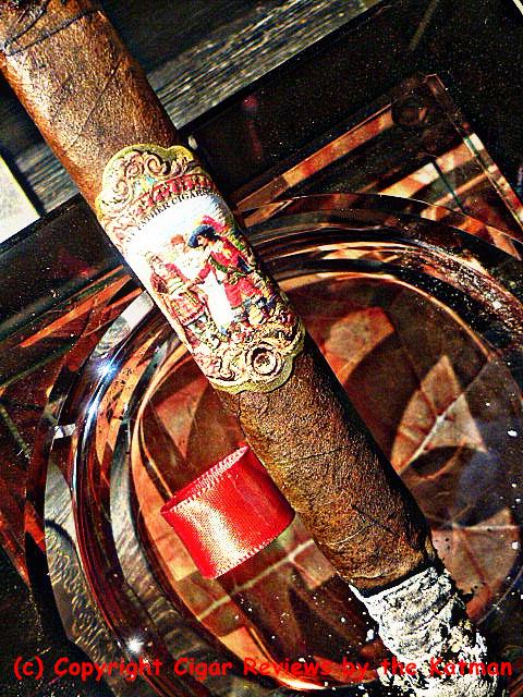 By the 1” mark, the cigar has become an official flavor bomb. Here are the flavors: Cocoa, spice, creaminess, coffee, oak, baking spice, dried fruit, black cherry, a taste of honey (with my apologies to Herb Alpert), and leather.