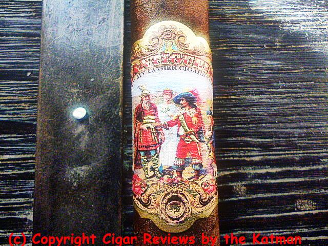 The cigar band is a mural of art. I looked at it through a magnifying glass and saw intense detail. Of course, my $1.25 Instamatic doesn’t pick up that detail. Plus the paper it is printed on has some sort of fancy linen finish that when looking close up; some of the detail goes away. The box press is not a crisp one. One corner is at a 90° angle and the next is a soft corner. No matter, it looks very nice.