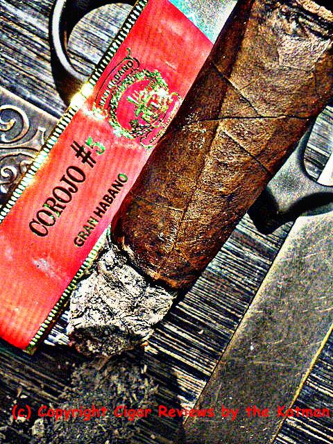 Construction is good but a few soft spots here and there. And rock hard in others. But I’m nit picking. The Corojo wrapper is an oily, toothy, chocolate brown. Seams are invisible. Lots of small veins. And a beautiful triple cap.
