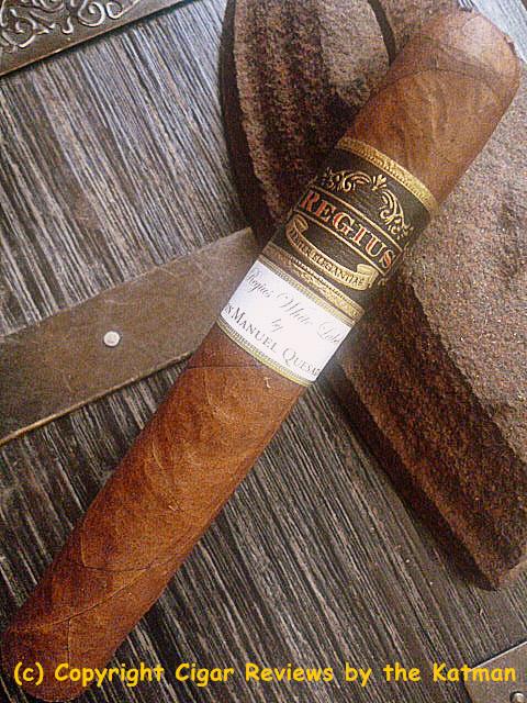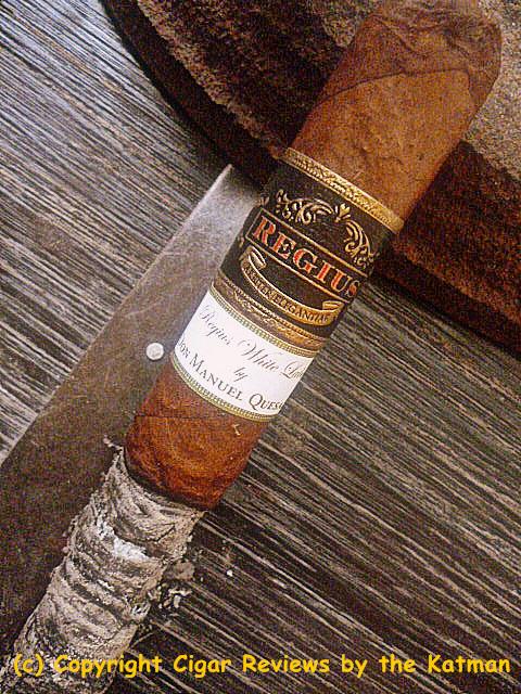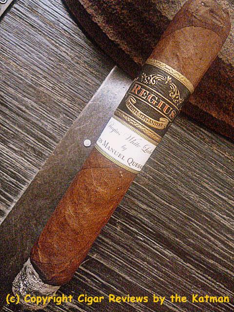 The cigar band is the standard Regius band but with an additional secondary band that is simple in white showing the name of the blend and underneath that: “by Don Manuel Quesada.” And when did Quesada become a “Don?”