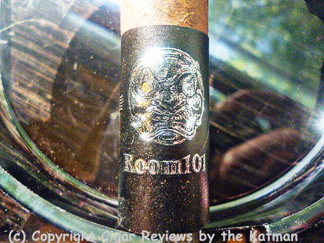 The cigar has the standard Room 101 cigar band but in addition has a large foot band declaring the name of the blend with the face logo.