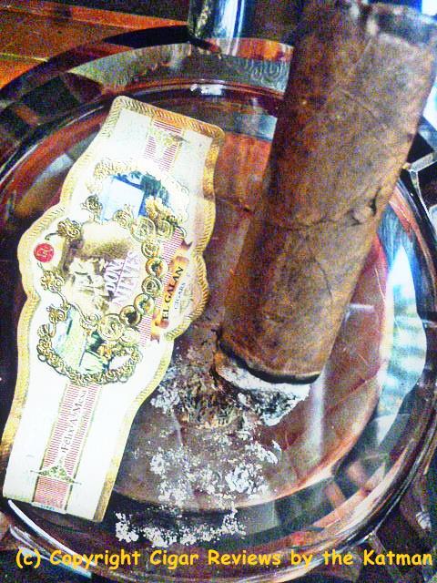 I’ve now invested over an hour of smoke time and I am still near the halfway point. I remove the cigar band. It is quite beautiful and ornate.