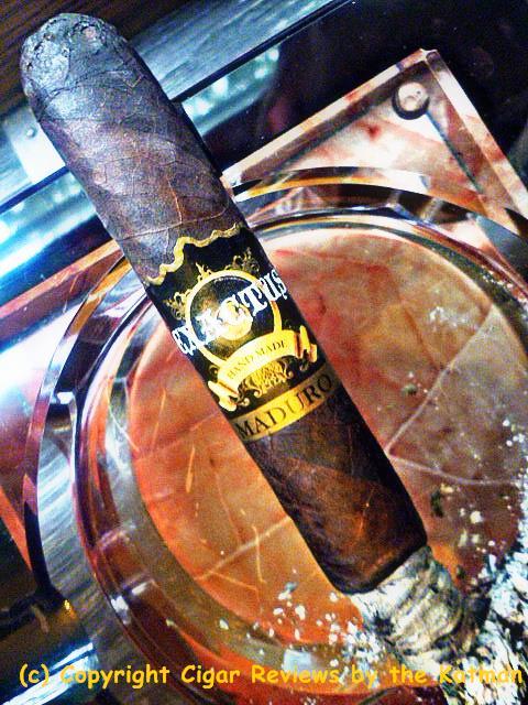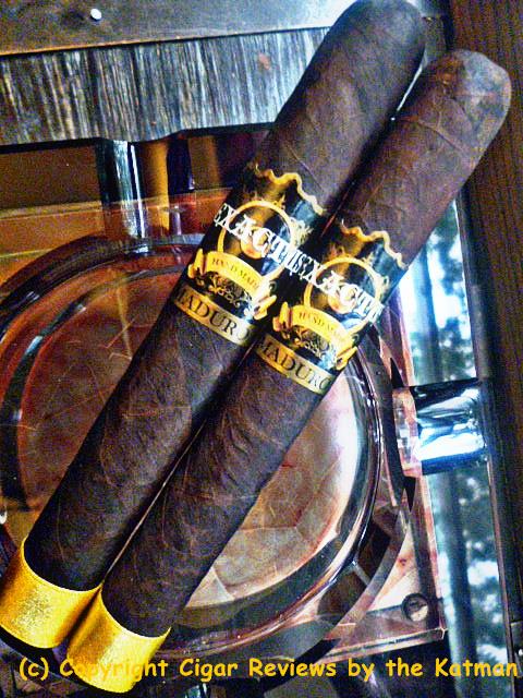 The cigar is coal black. Yet I detect a very mottled wrapper with a bit of oiliness and somewhat toothy. It is rustic as the sticks are a bit lumpy and bumpy. Seams are tight. Lots of veins. I assume it is a triple cap but it has one of the most flawless applications, consistently, that I have ever seen.