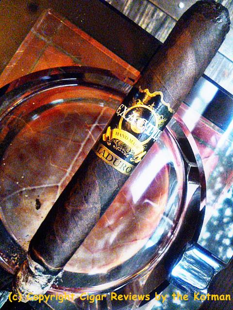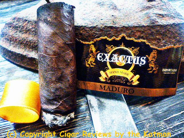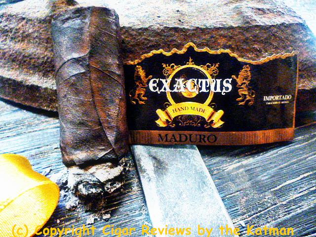 The Exactus Maduro starts off with a bang. First, a lava flow of red pepper. Then a cornucopia of flavors: Cocoa, creaminess, coffee, lemon citrus, wood, and black licorice.