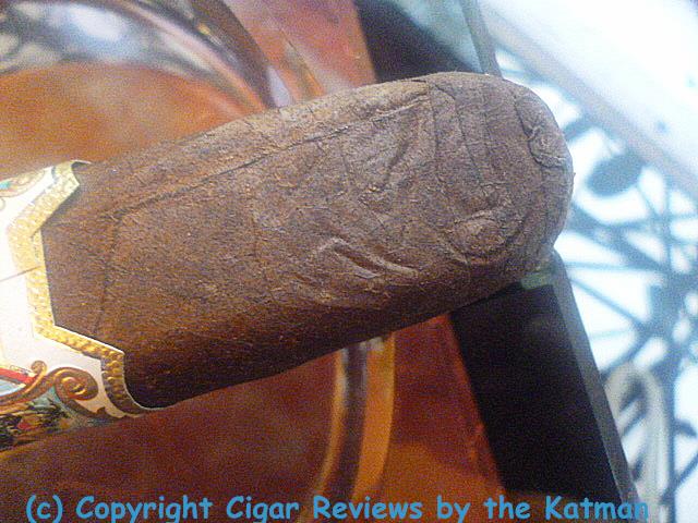Oddly, the stick is sloppy in construction. Seams are clearly visible. The rounded cap is kind of a mess on one side. Roller’s glue is visible. The leaf consistency is null and void. And on this particular stick, the wrapper doesn’t make it all the way to the foot on the back side.