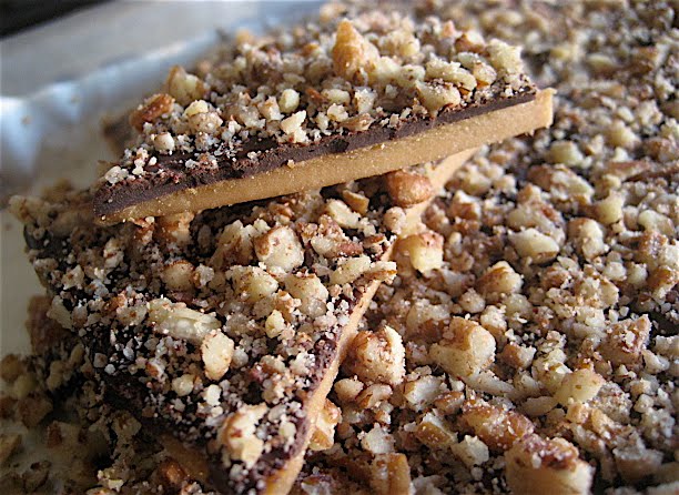 There is a hard toffee candy element with almonds and hazelnuts. Yum.