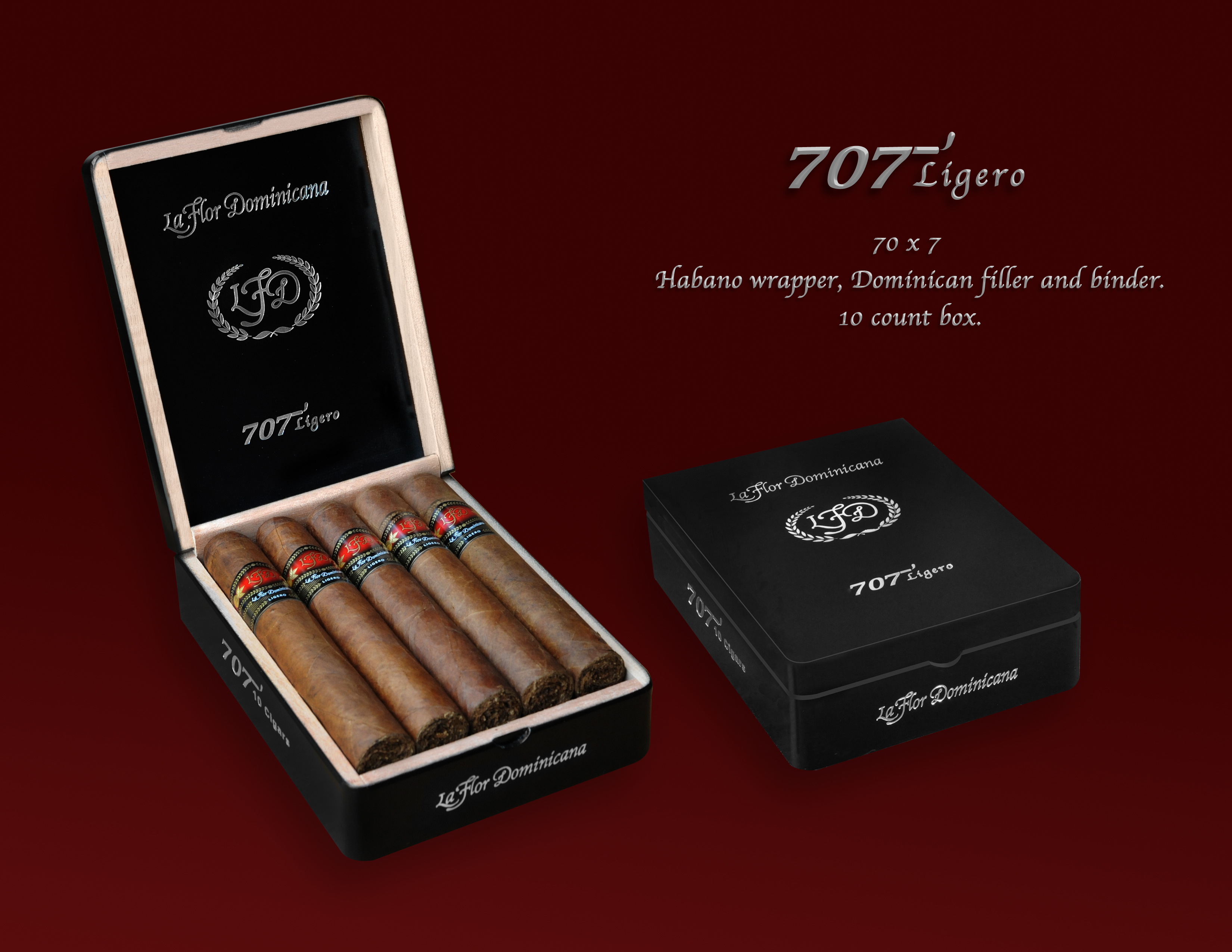 The 707 Ligero will be presented in (10) count boxes and will have an MSRP of $10.50 per cigar and $105.00 per box. The 707 Ligero will begin shipping to Premium Cigar Retailers nationwide the week of December 15, 2014.