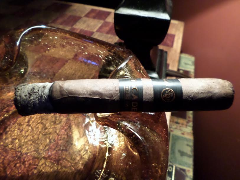 Removing the cigar from the cello the first thing I notice is the sloppily applied cap. It really seems to stand out to me and I can’t remember the last time I smoked a cigar where this was the first thing to stick out to me. The cigar has a double cigar band, black background with a diamond pattern, the “RP” logo surrounded by “Rocky” and “Patel” on one and “Decade” with “Cameroon” underneath it on the other. The wrapper has a matte finish with no oils at all.