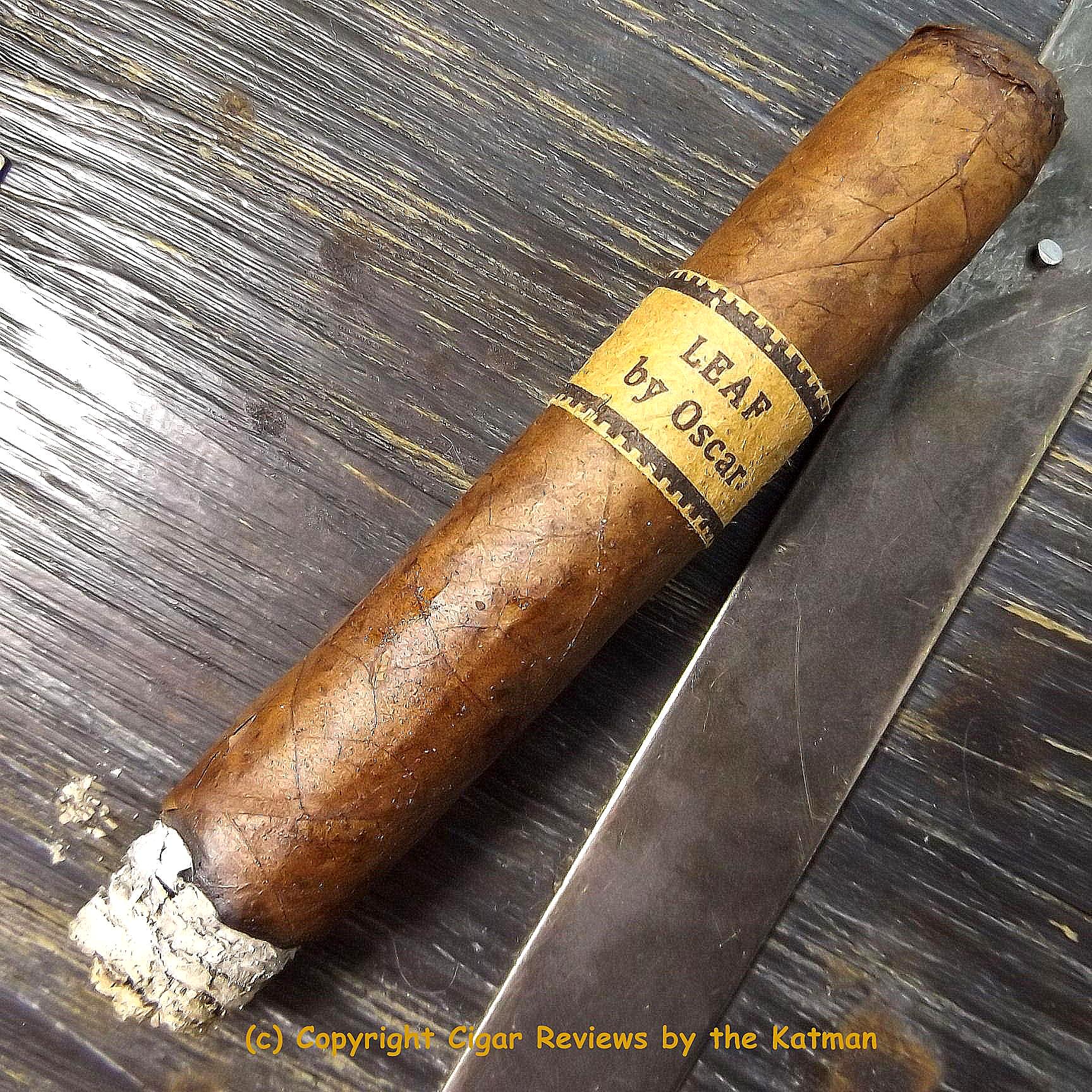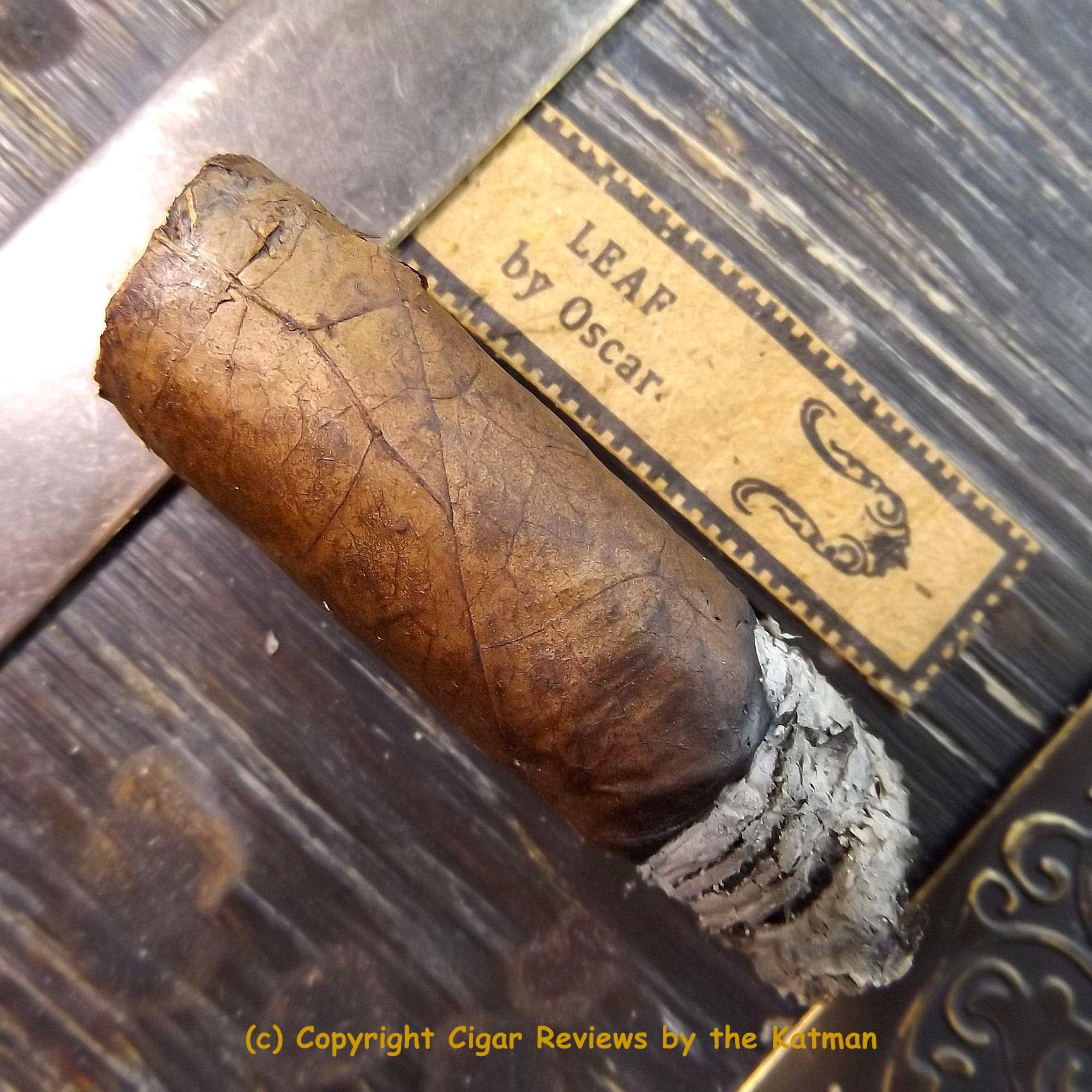 So far, the Leaf by Oscar (Maduro) has behaved nicely. No touch ups required. No wrapper issues. And the cap is hanging tough.