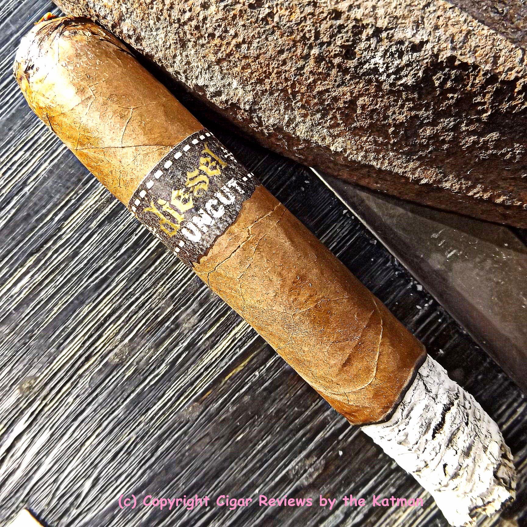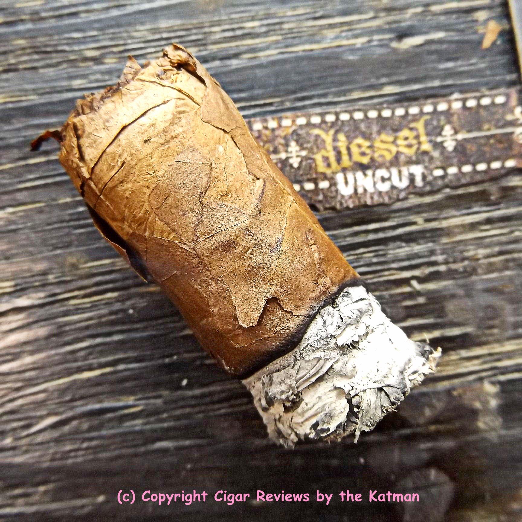 I read that the Diesel Uncut is the cigar that the rollers build and smoke in the factory. I don’t know if that means it’s what they sweep up at the end of the day from the floor; or its bits and pieces leftover from other Diesel cigars. But this is a long filler stick; not a Cuban sandwich style so I believe my latter conclusion is more accurate.