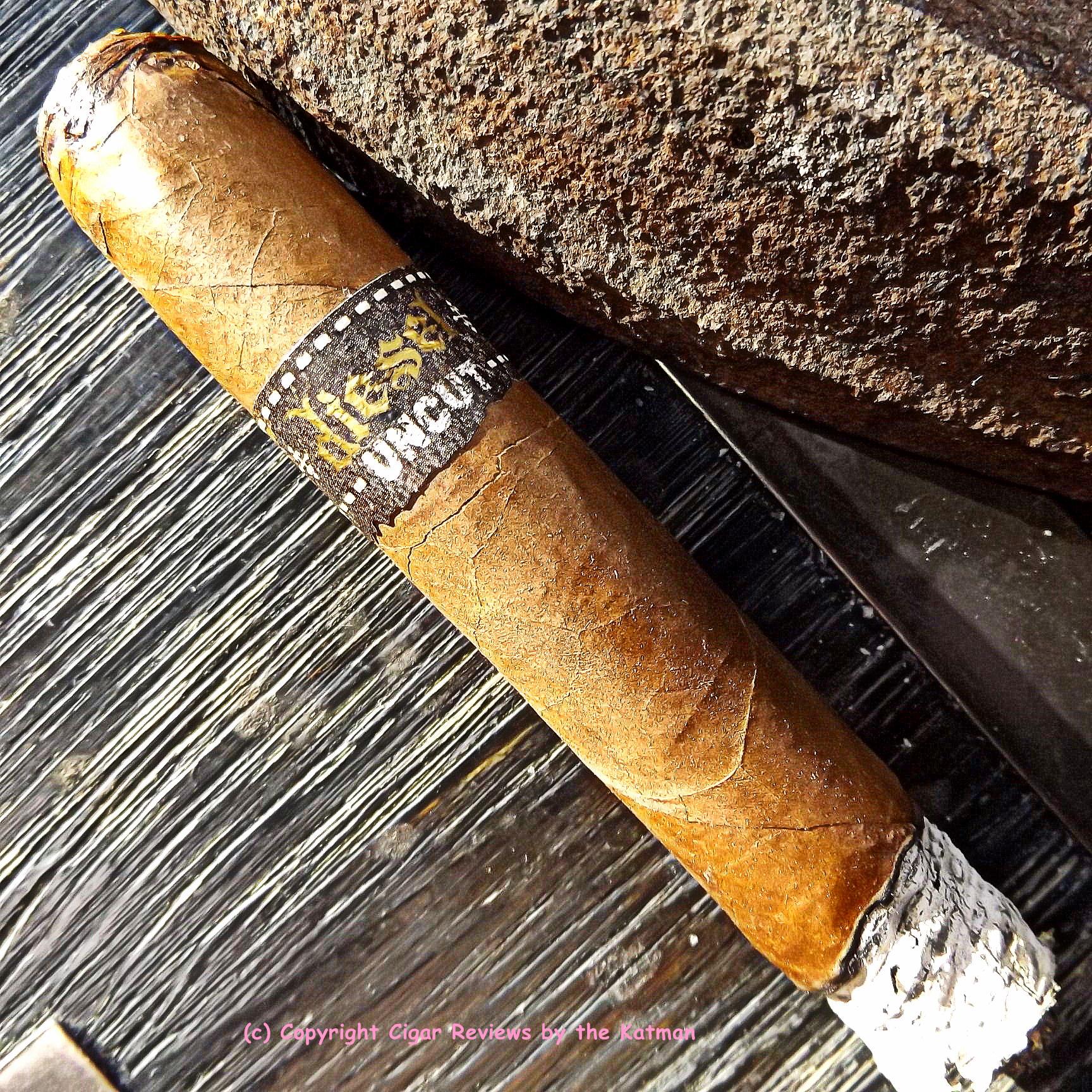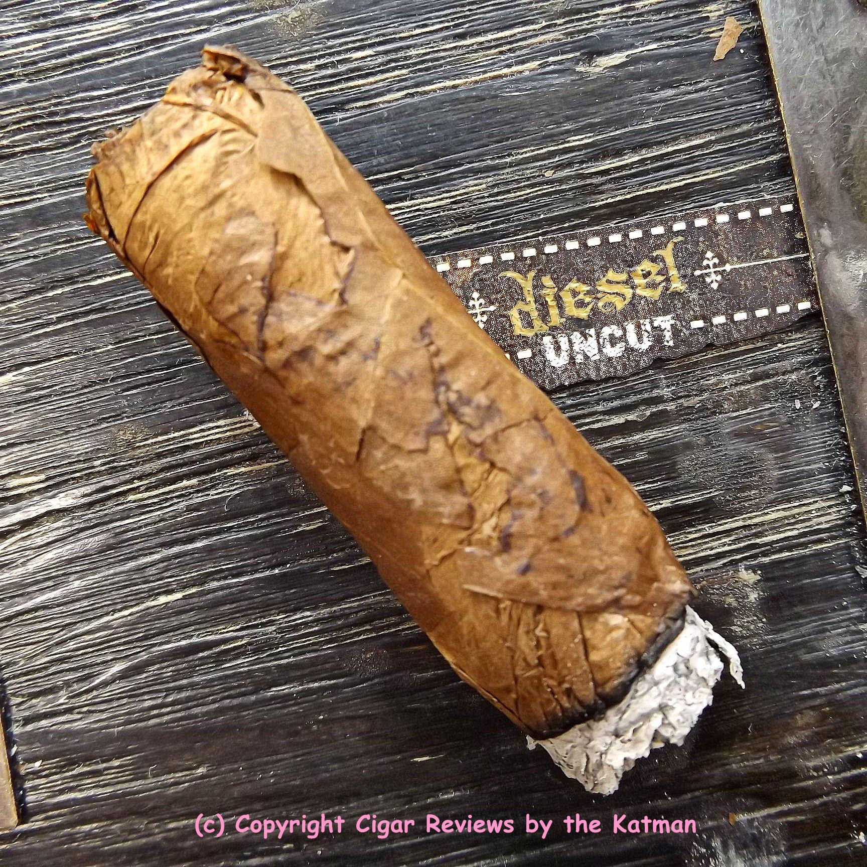 The Diesel Uncut is not a bad looking cigar. Tight seams. Not as many veins as expected. Solid and evenly packed. The wrapper is an oily milk chocolate color that feels smooth. It has a closed foot that one finds unusual in a $4 cigar.