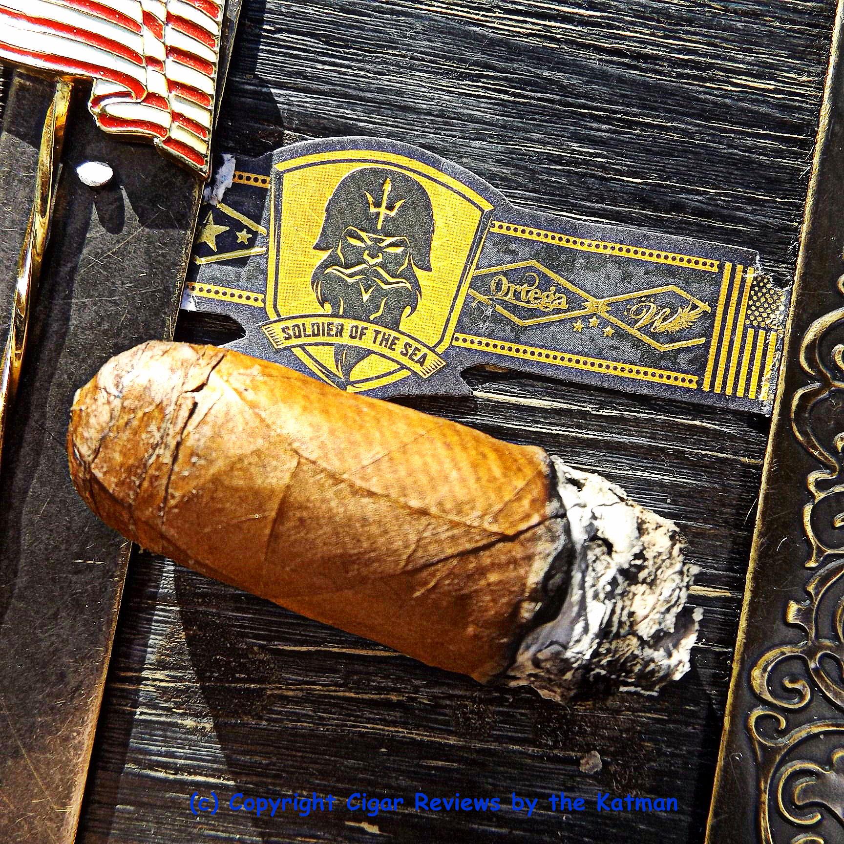 The Ortega Wings for Warriors Soldier of the Sea is jam packed with tobacco and is therefore, by proclamation, a slow smoke. I expect 90 minutes.