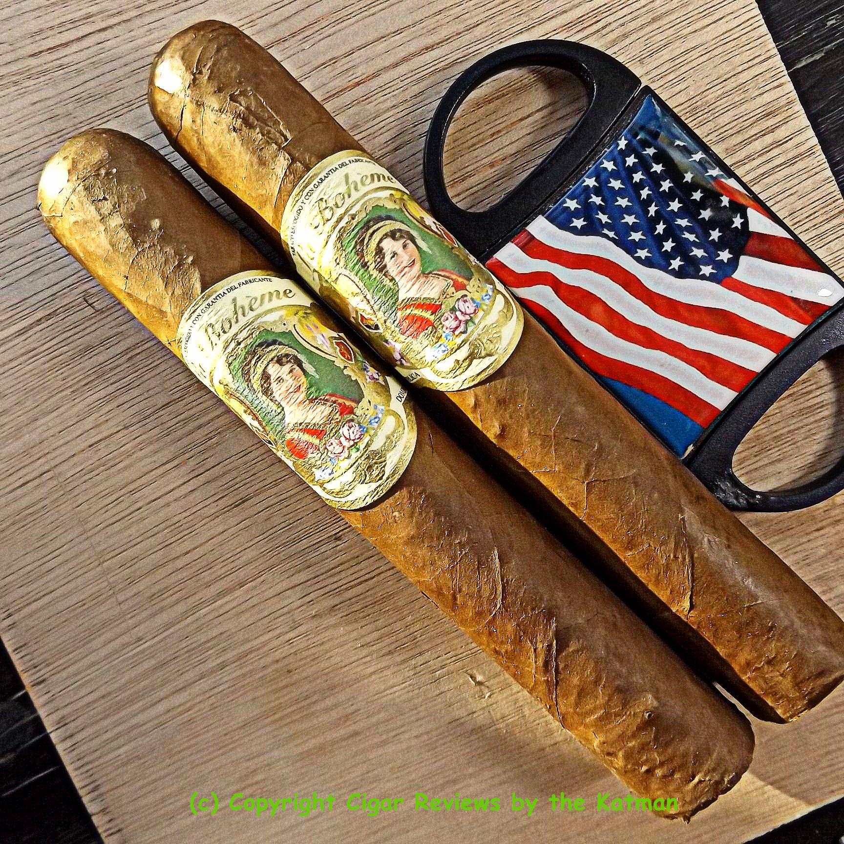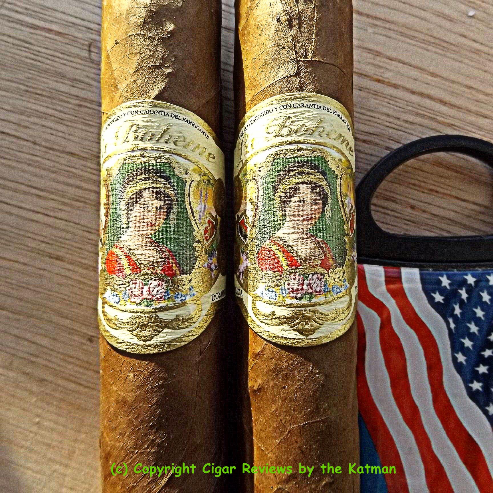 The cigar band is beautiful. The cameo of a woman adorns the front. La Bohéme is a libretto based on the romantic relationship between Rodolfo and Mimì, ending with her death. So I suppose we are looking at Mimi.