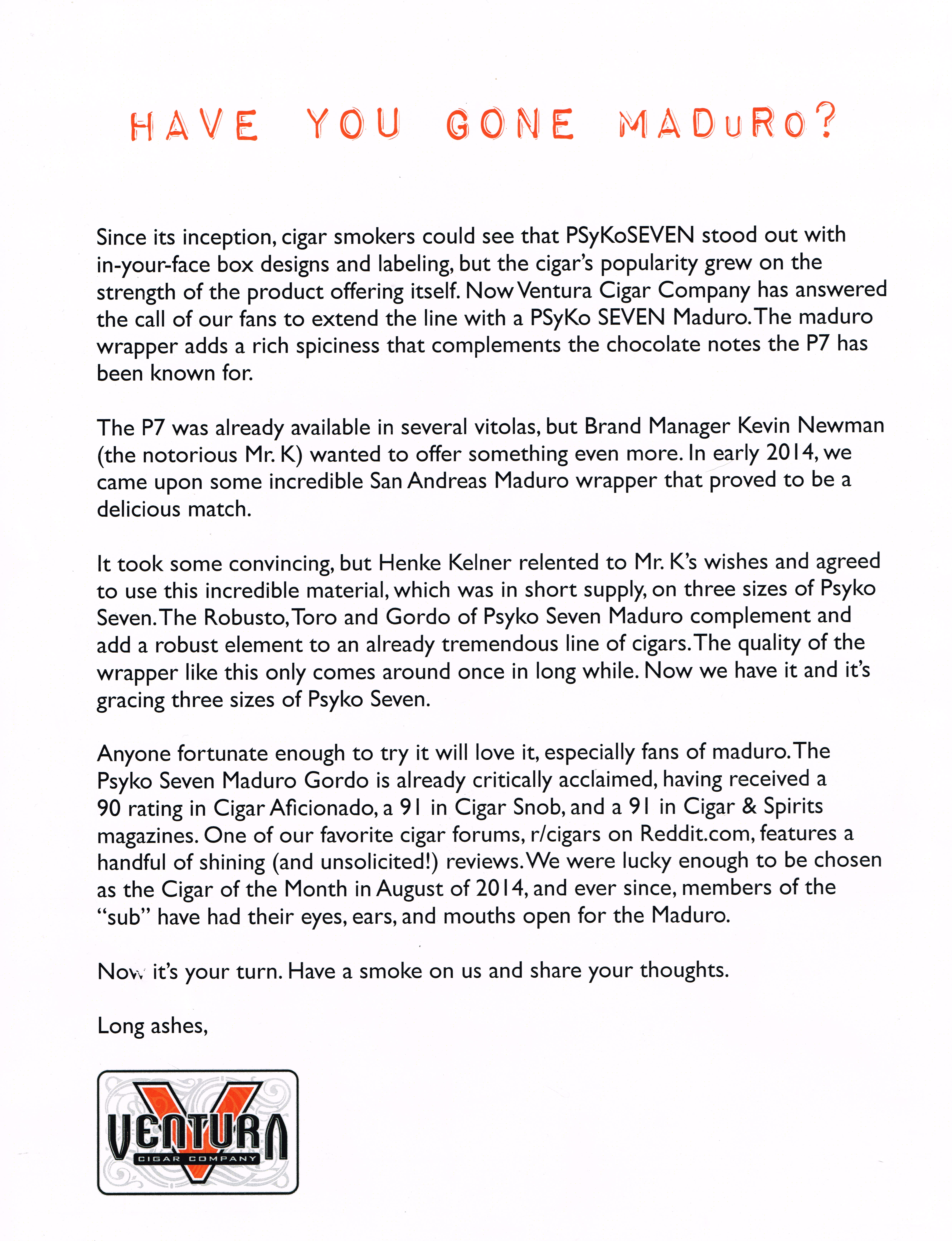 Today we take a look at the new PSyKo SEVEN Maduro by Ventura Cigar Company.
