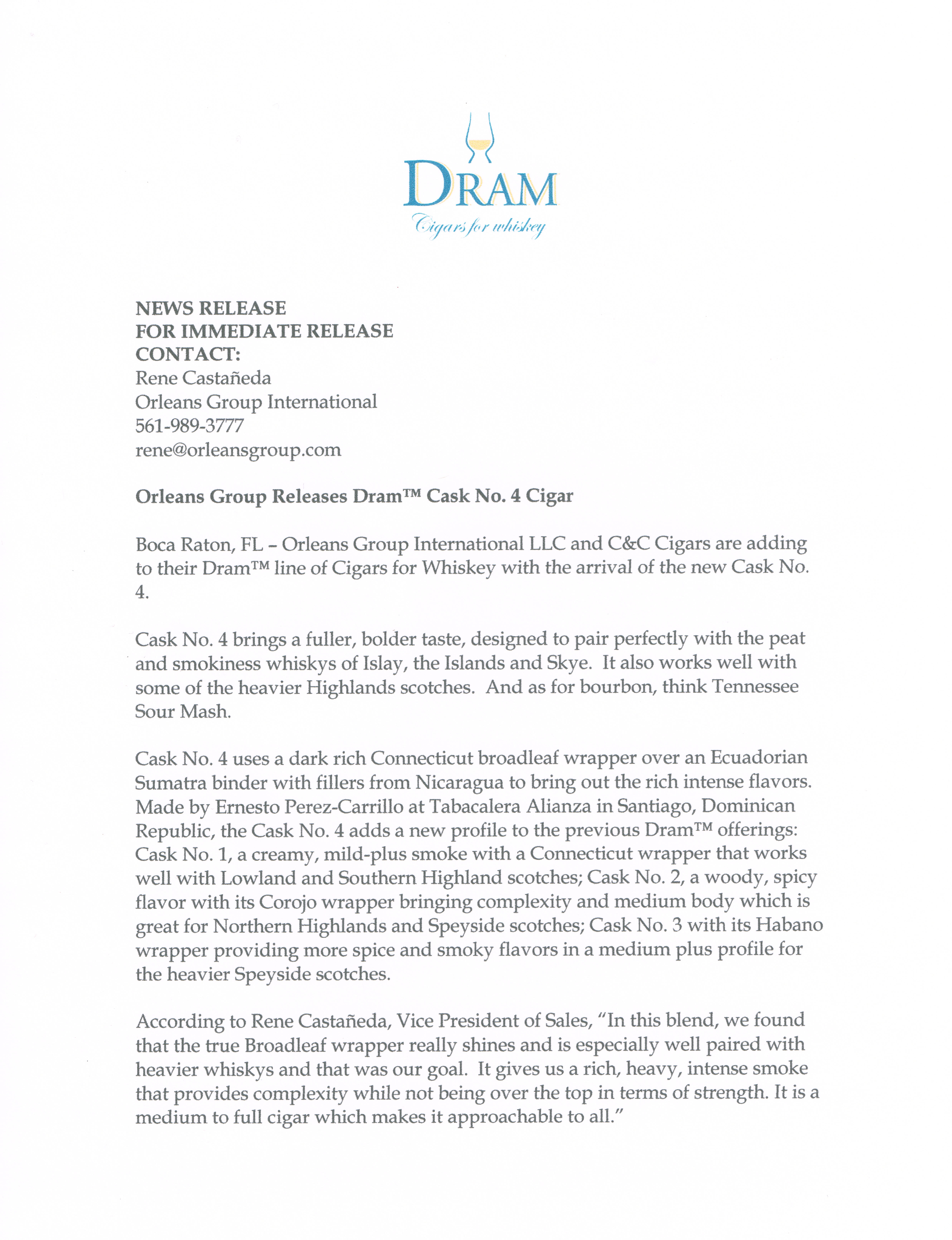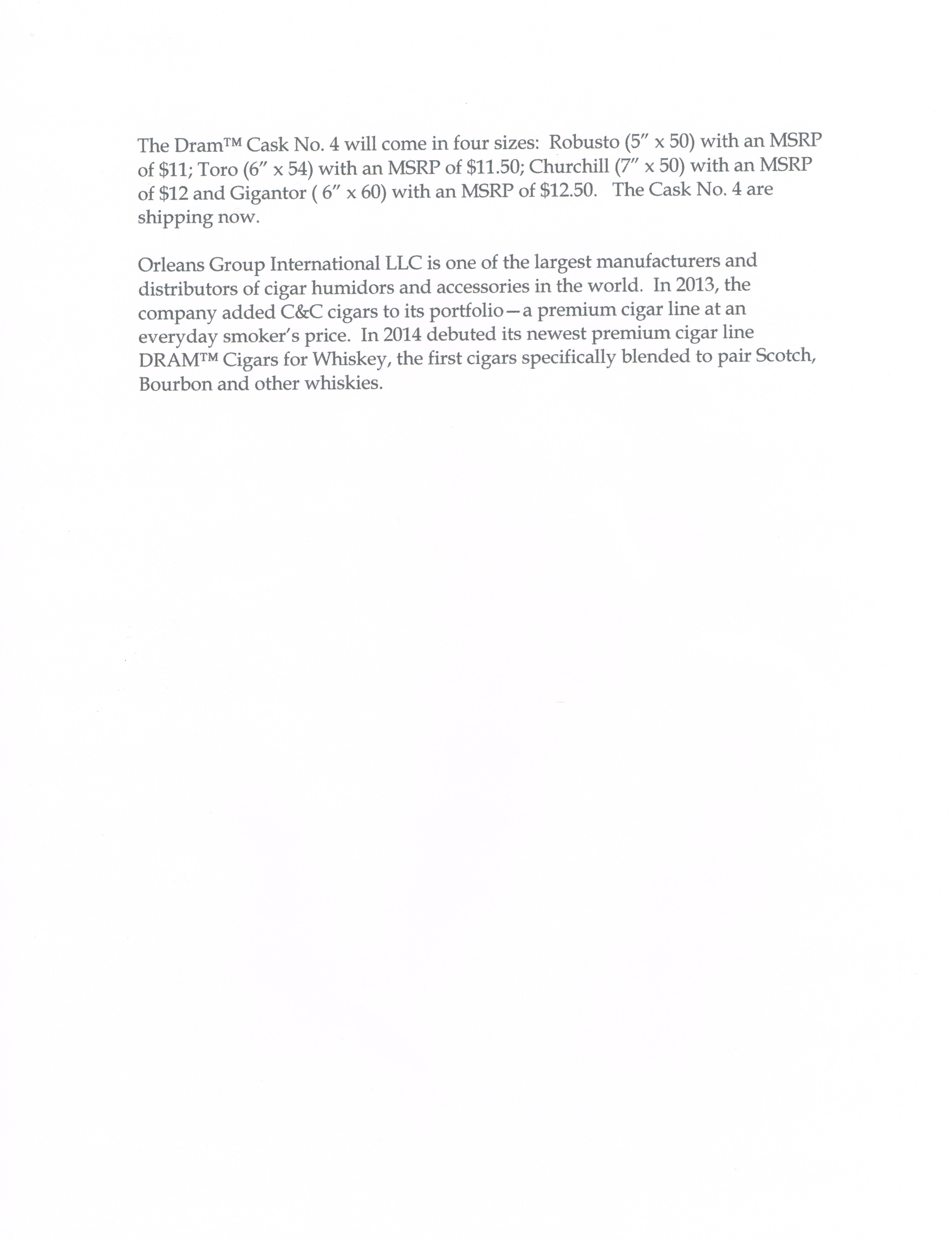 Press Release: Orleans Group Releases Dram Cask No. 4 | Cigar Reviews by the Katman By Cigar Reviews by the Katman on June 13, 2015 Discover more from Cigar Reviews by the Katman Subscribe to get the latest posts sent to your email. Type your email… Subscribe ‹ Dom Privé White Label from Marco V Premium Cigars | Cigar ReviewEl Primer Mundo Epifania | Cigar Review ›Categories: CIGAR REVIEWSTags: Press Release: Orleans Group Releases Dram Cask No. 4 | Cigar Reviews by the Katman