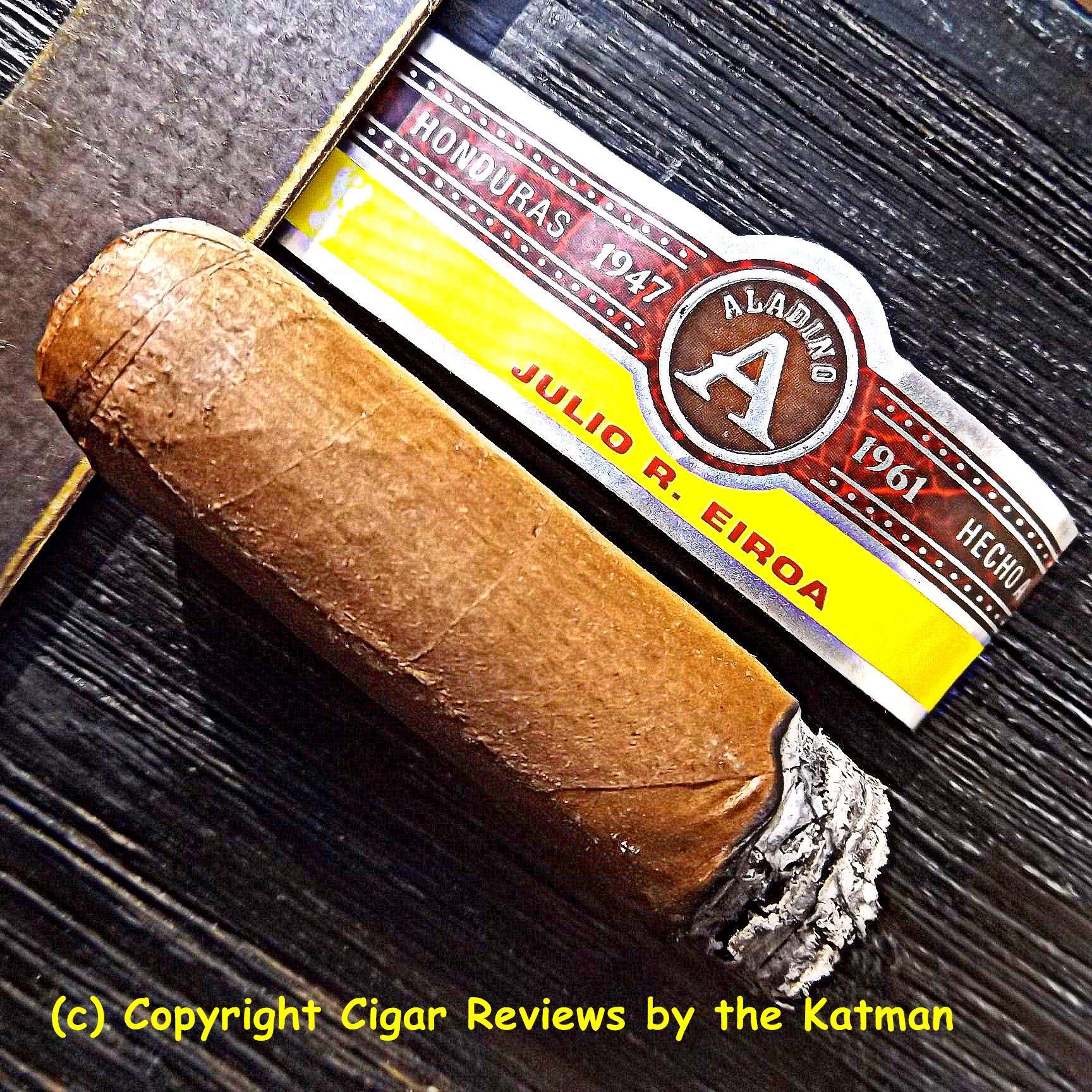The Aladino by Julio R. Eiroa is very creamy and very spicy. Strength is trying to make it to medium body like the Little Engine that Could. It might make it in the last inch of the cigar. We shall see.