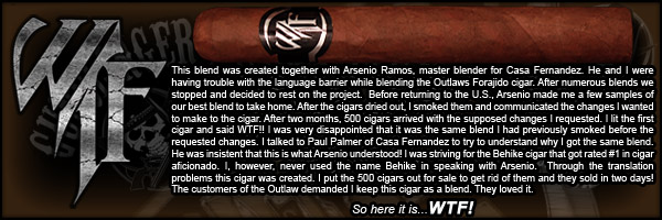 From The Outlaw Cigar Company web site about the WTF Natural. A precursor to the WTF Maduro: